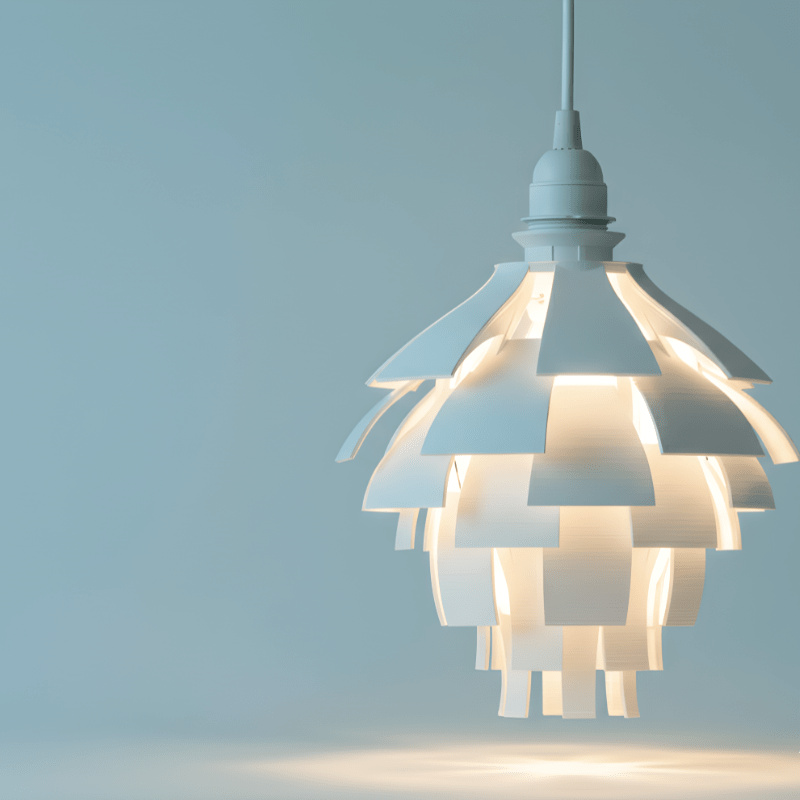 The Artichoke Lamp Shade draws inspiration from the layered beauty of the artichoke plant. Its cascading, petal-like structure creates a striking sculptural effect that transforms ordinary lighting into an artistic centerpiece. -